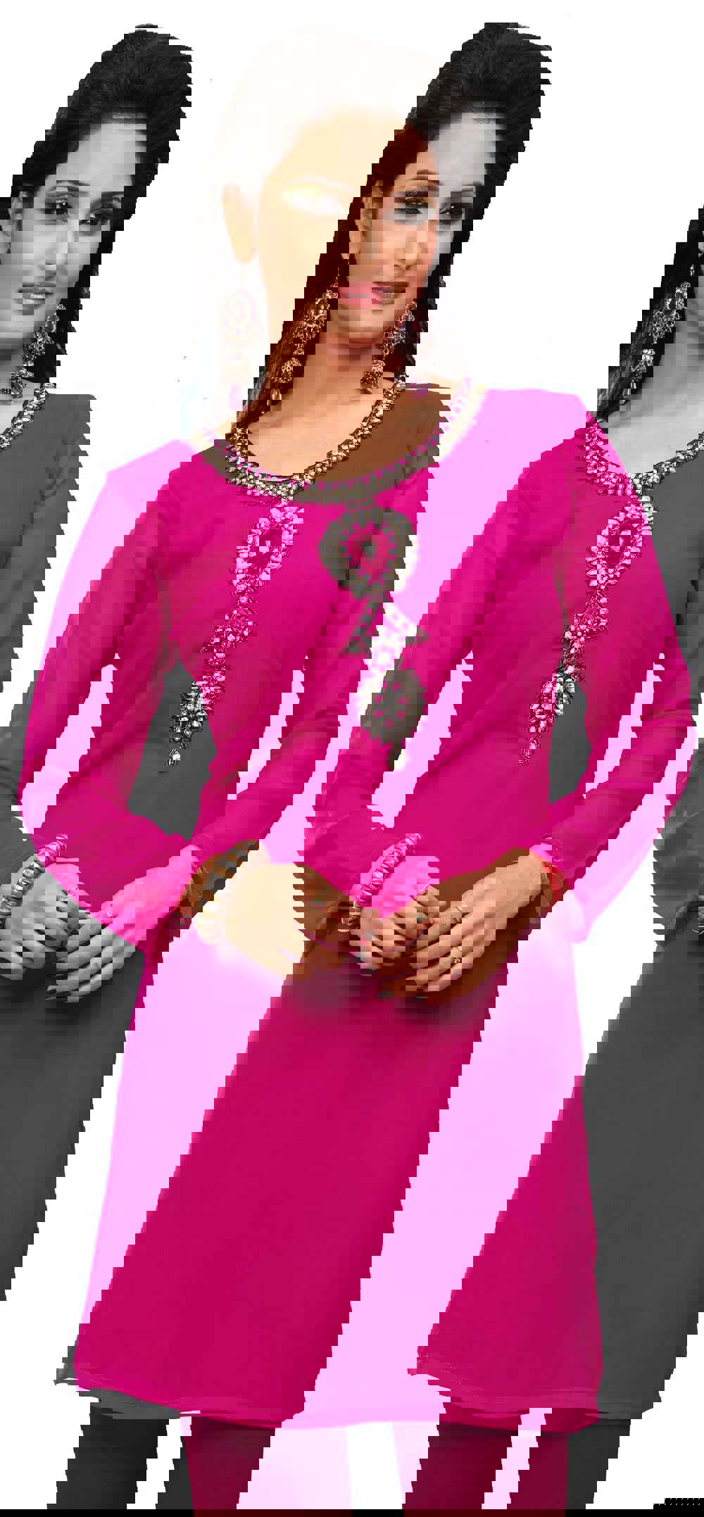 Women's Pink Sequins Kurti Top Long Tunic Blouse - Indian Georgette Fabric