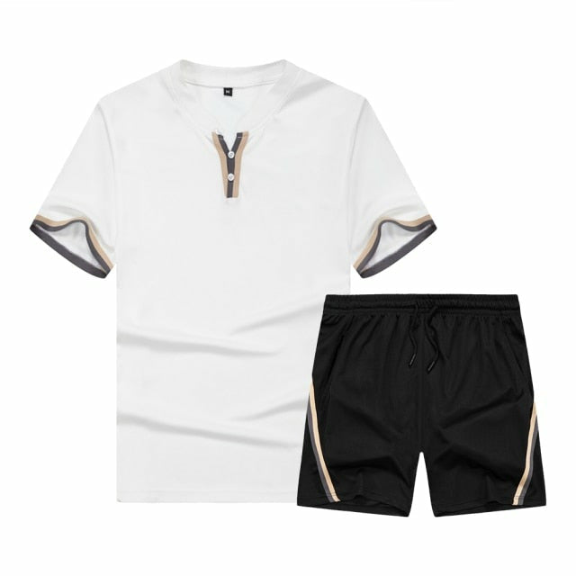 Men's Casual Sportswear 2-Piece Set - Breathable Summer Short Sleeve Shirt & Shorts