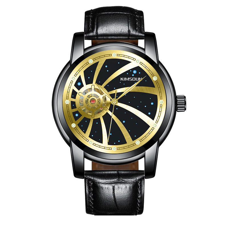KIMSDUN Men's Automatic Mechanical Watch with Starry Dial and Hollow Design