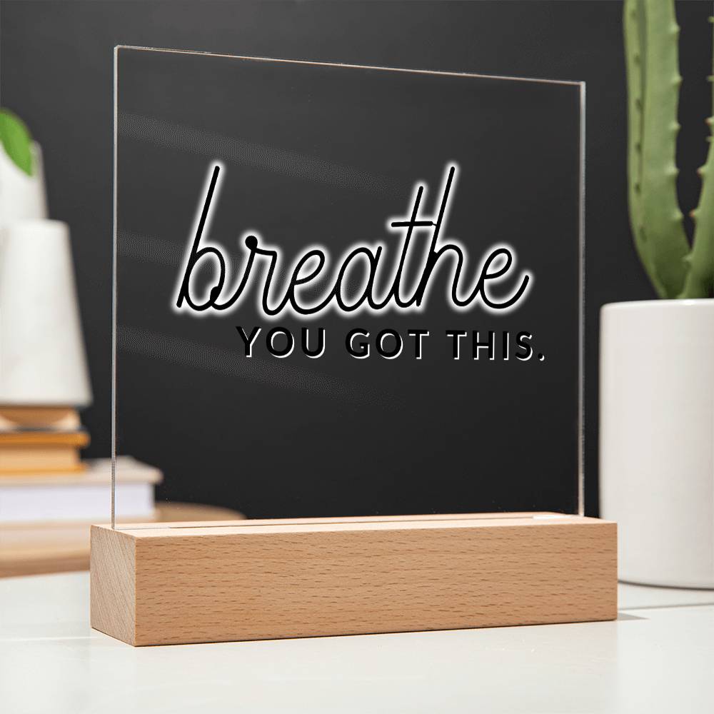 Breath - Motivational Acrylic Plaque with LED Night Light - Inspirational Home Decor - Perfect Gift for Encouragement, Birthday or Christmas