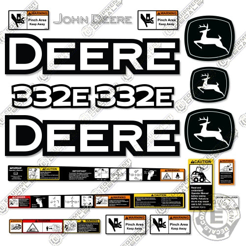 Fits John Deere 332E Decal Kit Skid Steer - High-Quality Warning Stickers