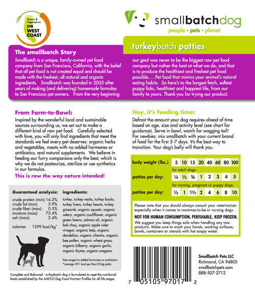 Smallbatch Frozen Raw Dog Food - Turkeybatch
