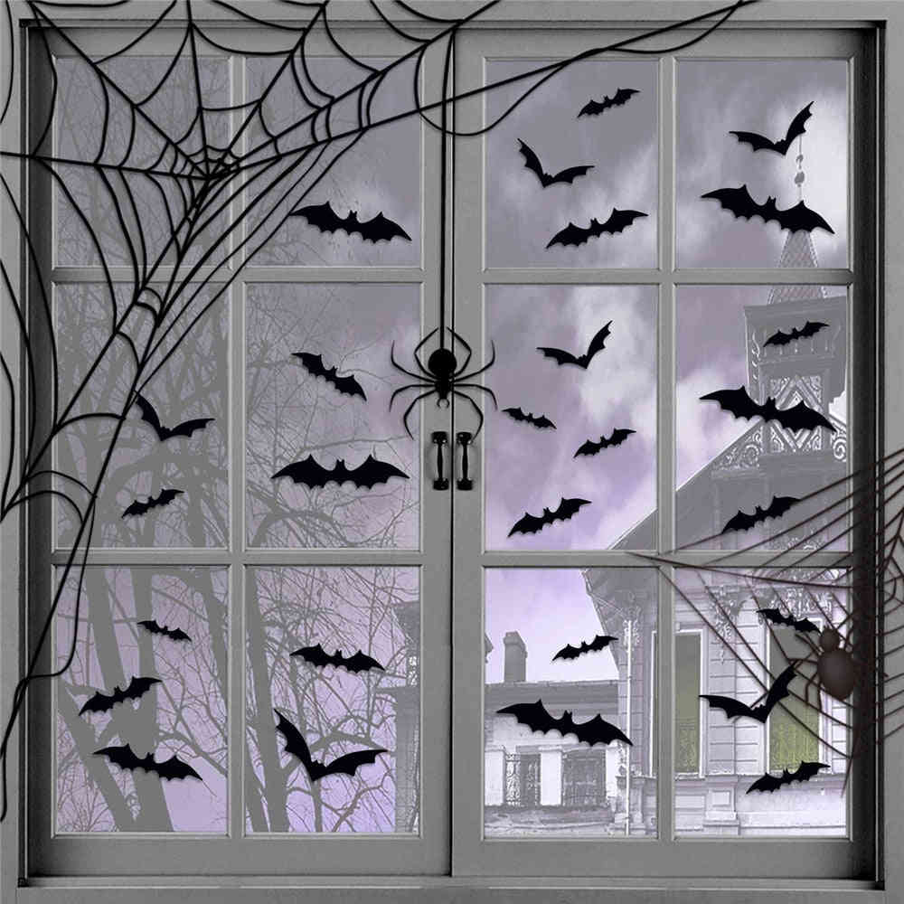 BETTER BOO 24/48pcs Halloween Decoration 3D Black PVC Bat Wall Stickers