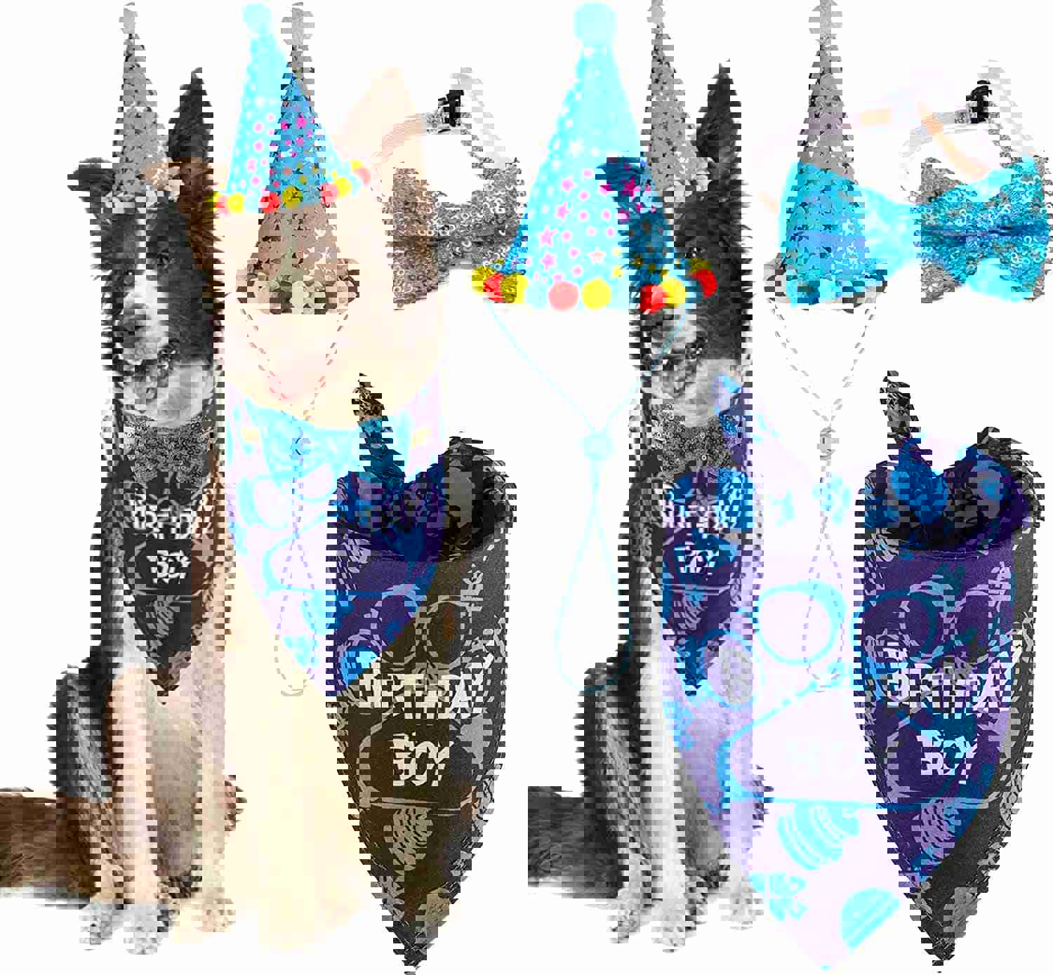 TCBOYING Dog Birthday Party Supplies Set - Bandana, Hat, and Bow Tie for Small to Medium Dogs