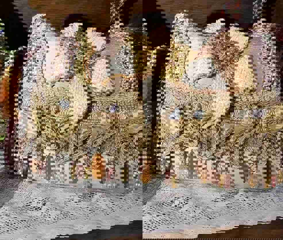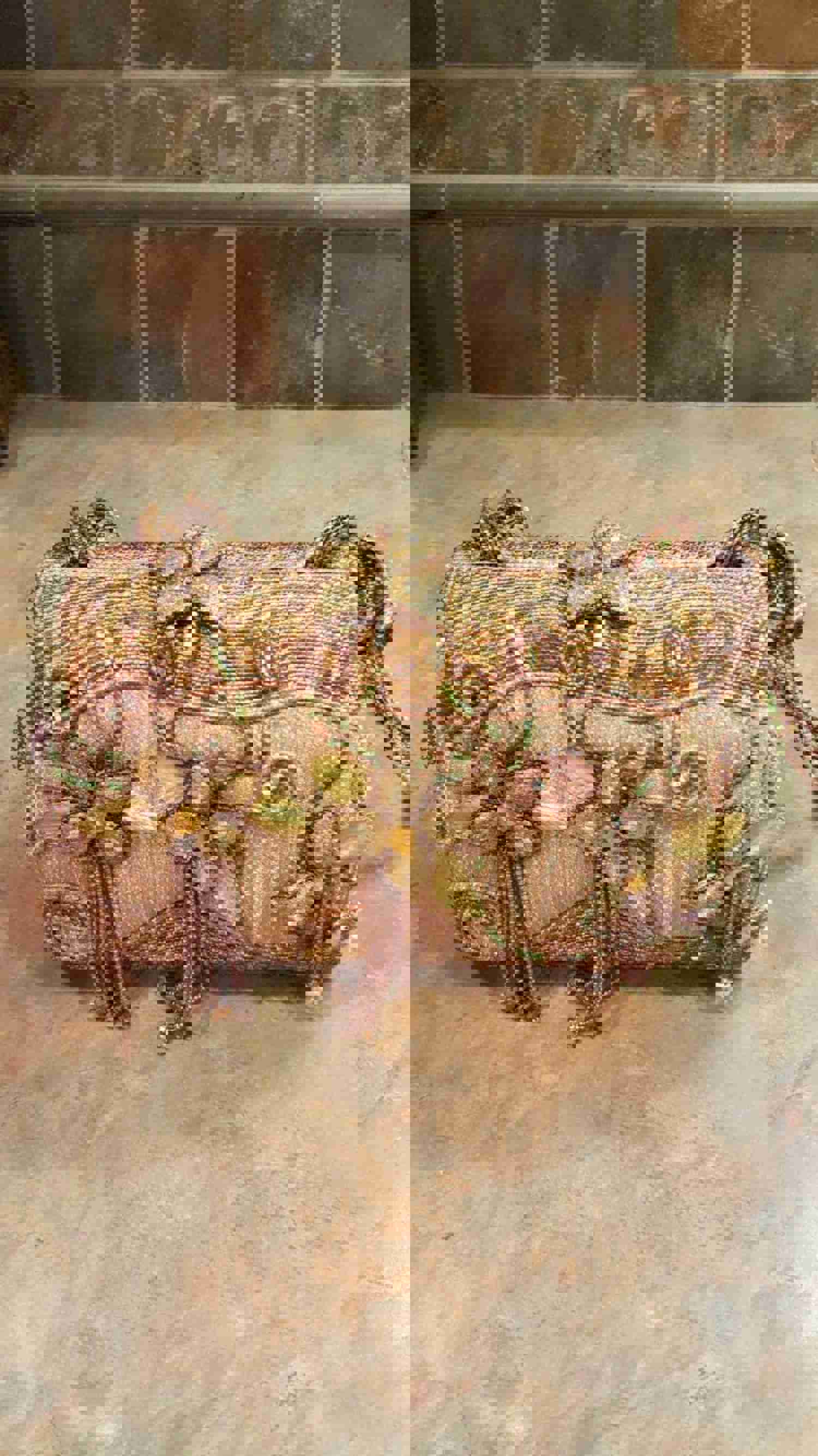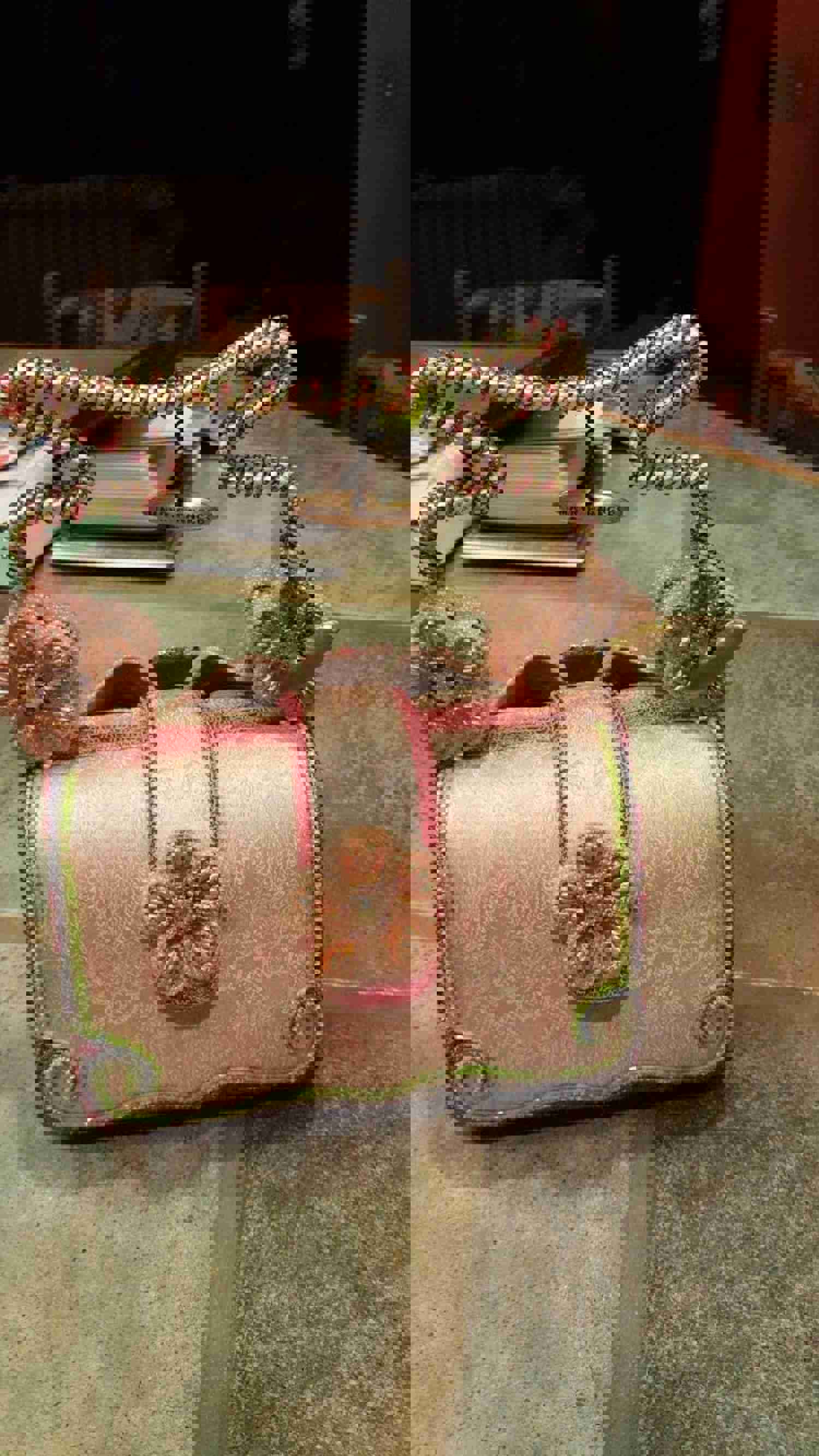 Mary Frances Pink & Gold Flower Retired Beaded Hand Bag