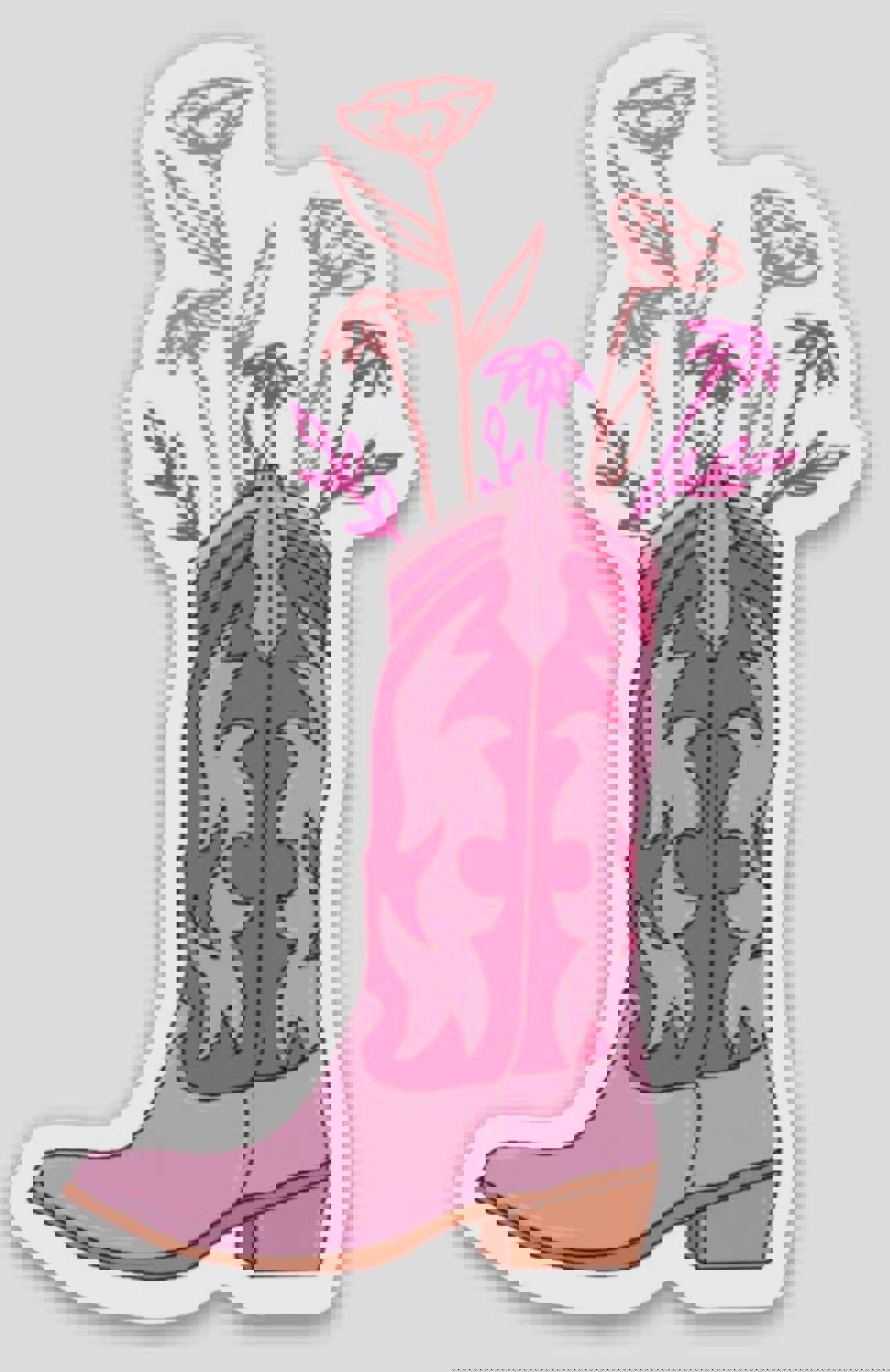 Cowgirl Boot – Pink & Red Flowers (Pointing Right)