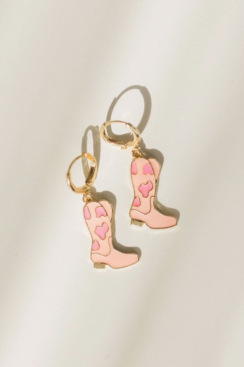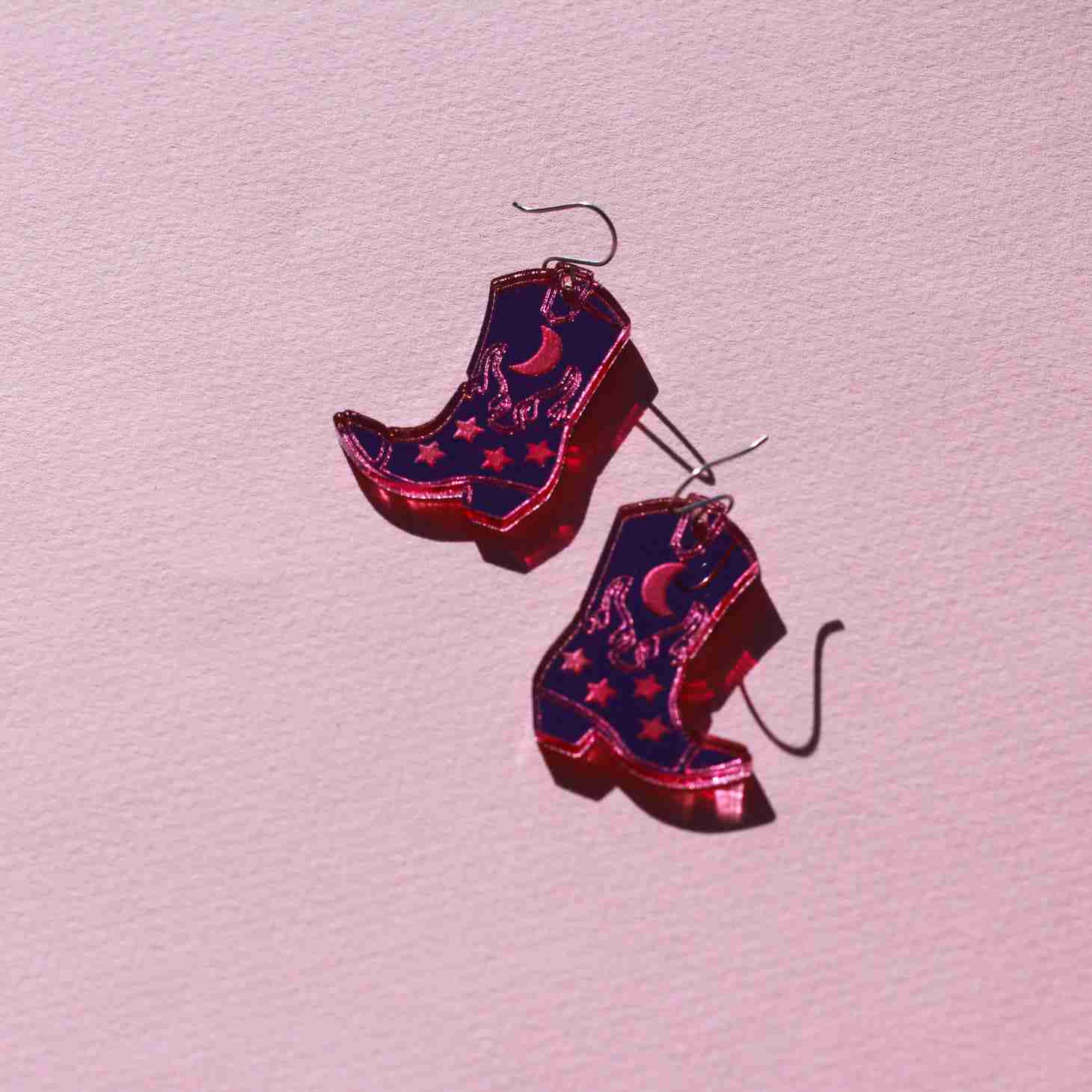 Cowgirl Boot Dangles - Pink Acrylic Earrings with Titanium Posts