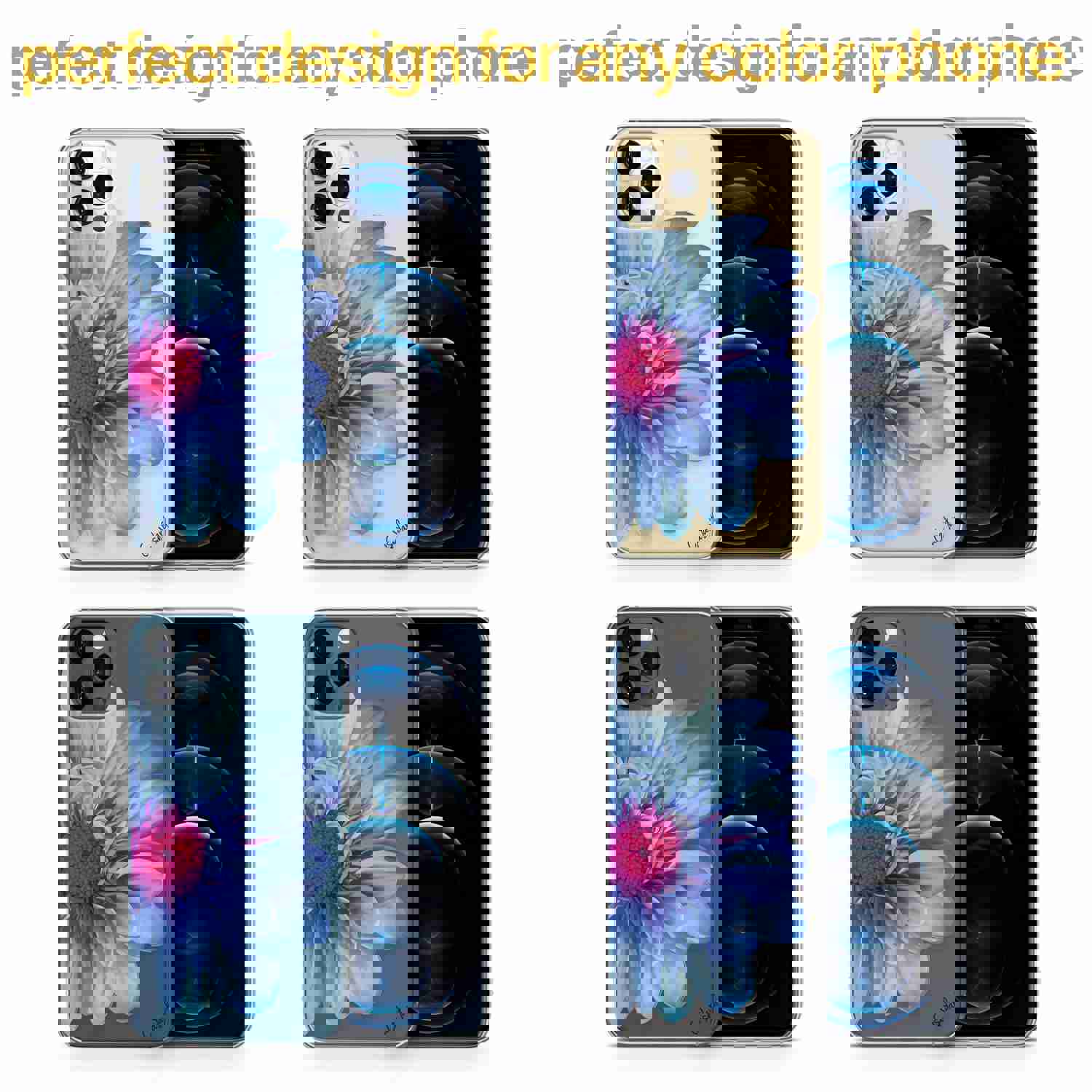 High-Quality TPU Clear Case with Blue Flower Design for iPhone & Samsung Phones