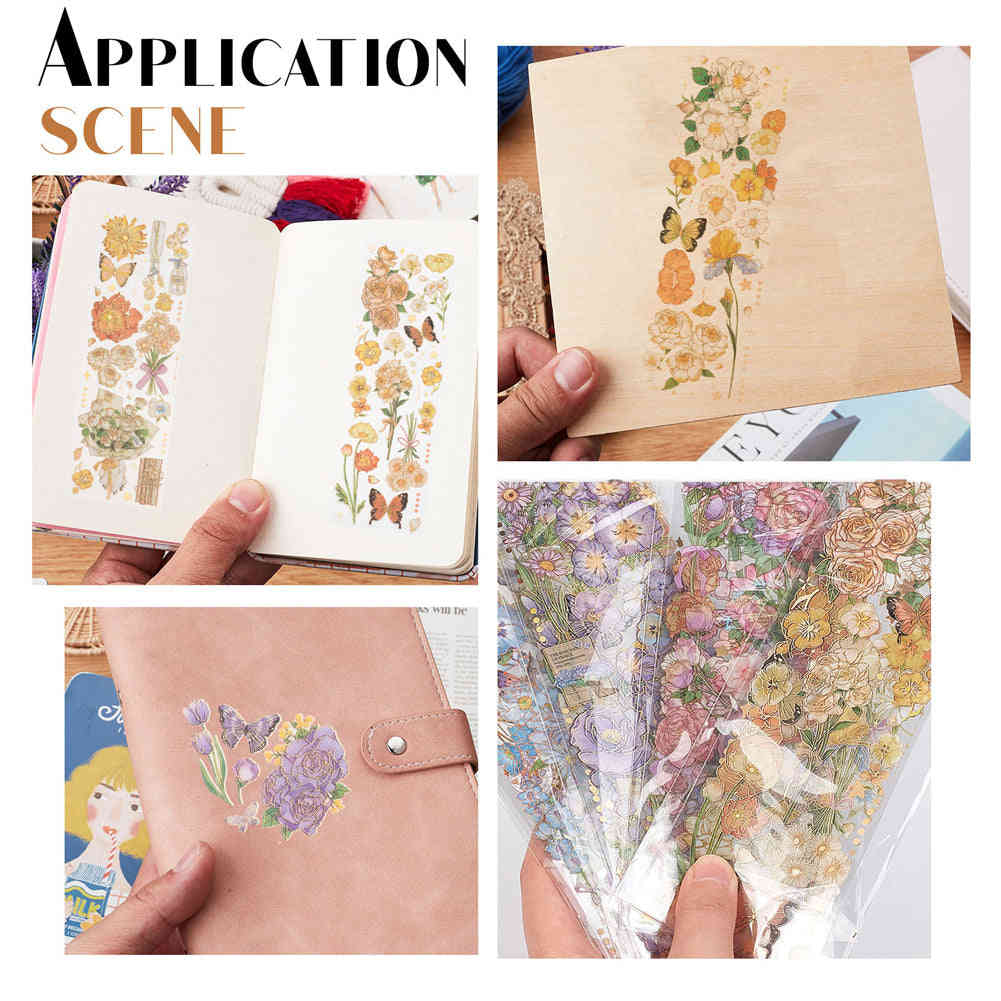 Craspire 4 Sets Retro Hot Stamping Waterproof PET Adhesive Stickers for Scrapbooking and DIY Crafts