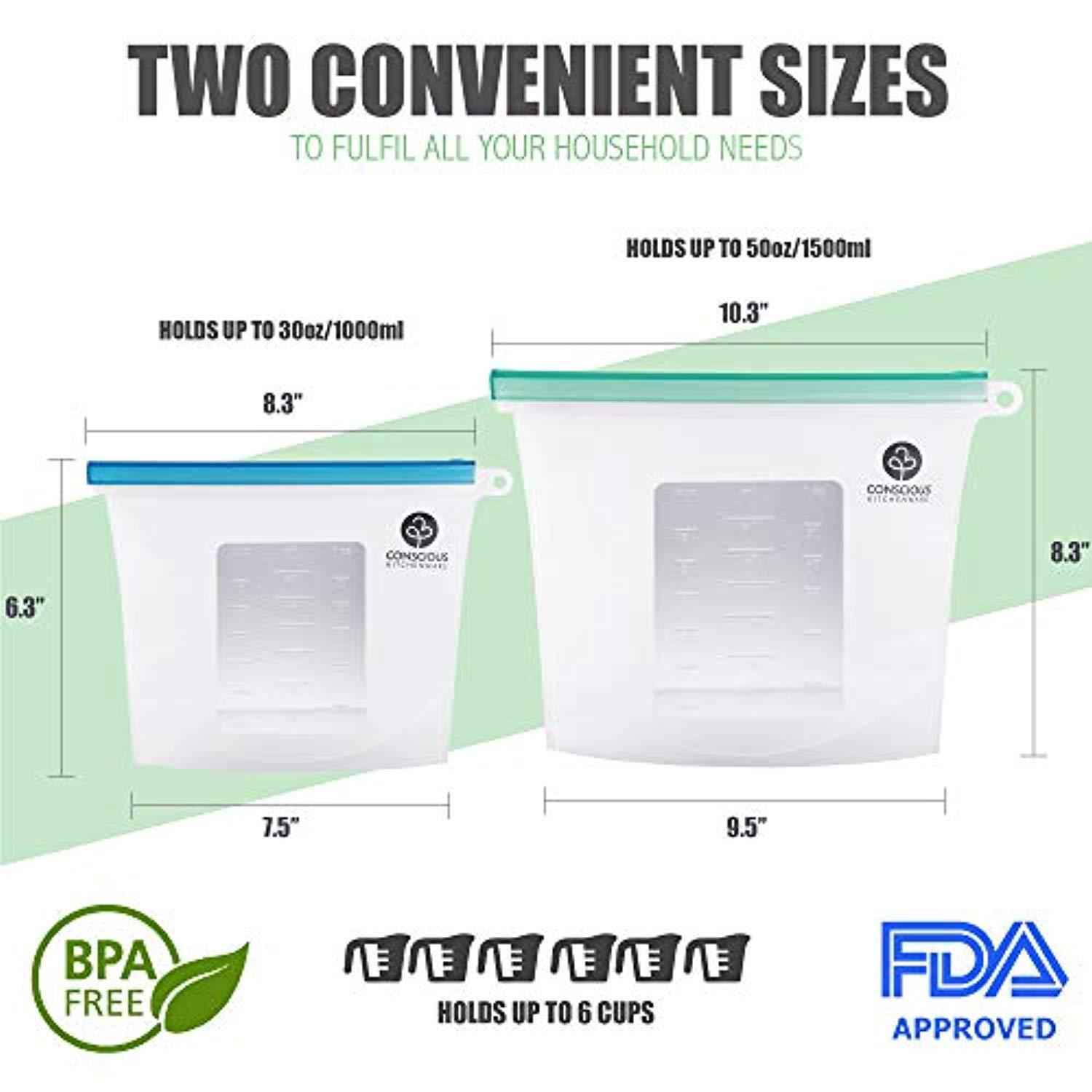 Eco-Friendly Reusable Silicone Food Storage Bags Set - Large & Small Sizes, Airtight Seal