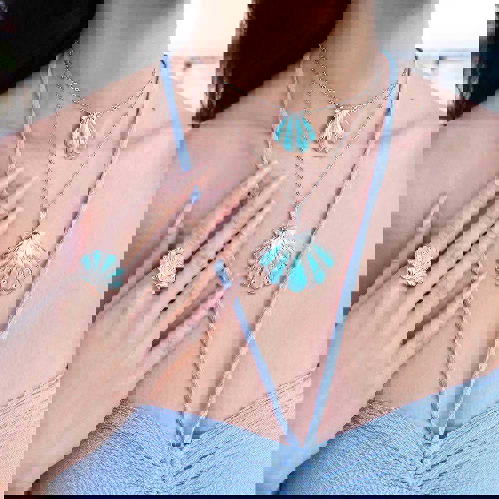 Larimar Mermaid’s Oyster Shell Pendant in 925 Sterling Silver
