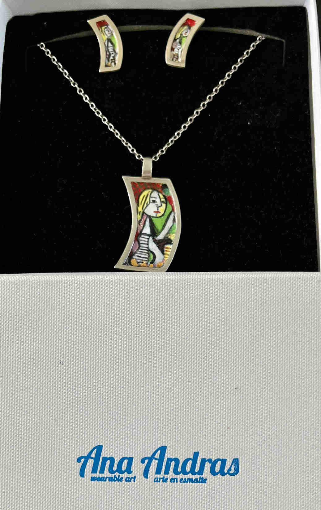 Picassos Women Enamel on Silver Pendant - Handmade Sterling Silver Jewelry