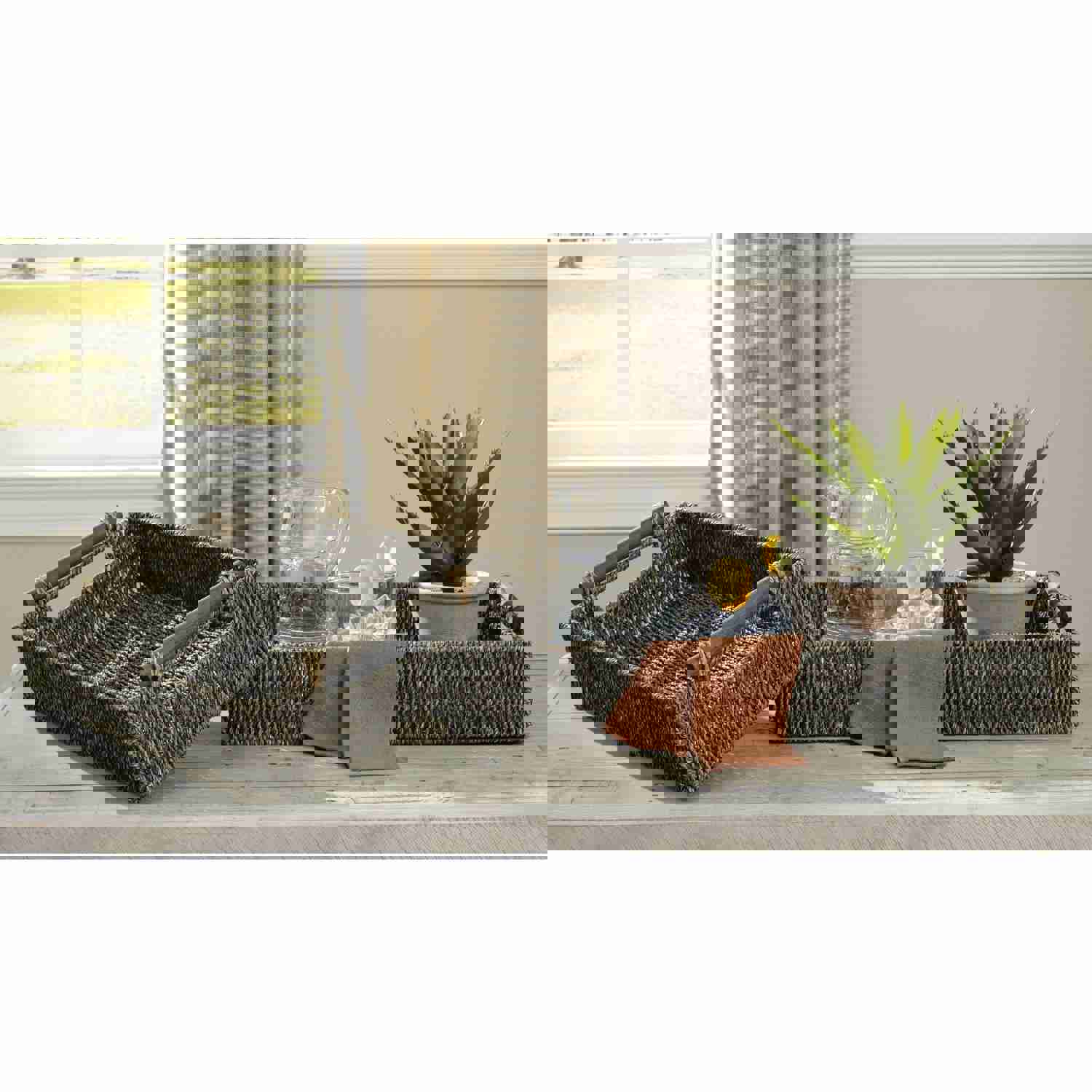 Signature Design by Ashley Home Decor Trays A2000466 - Set of Woven Seagrass Trays with Cutout Wood Handles