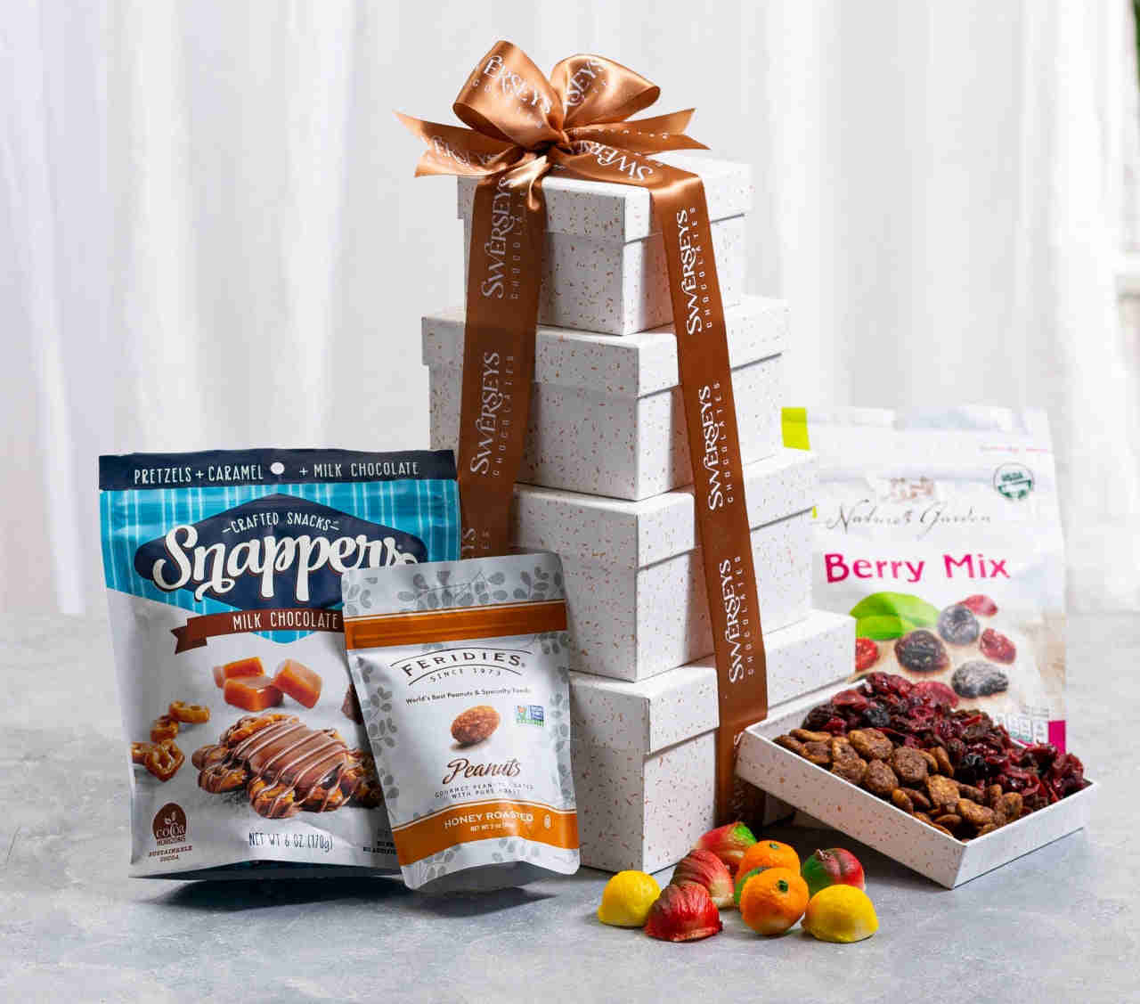 Tu Bishvat Signature White Bakery Gift Tower - Kosher & Dairy-Free