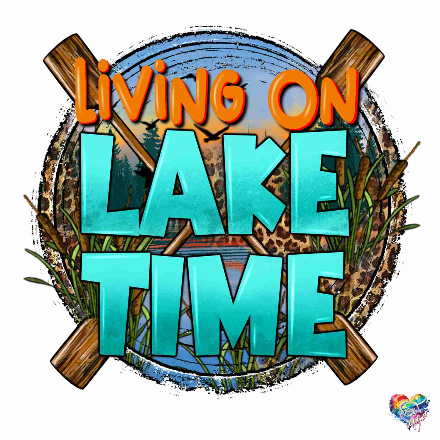 Living on Lake Time UV DTF Decal 4 x 4 inches - Permanent & Waterproof Cup Wrap Transfer