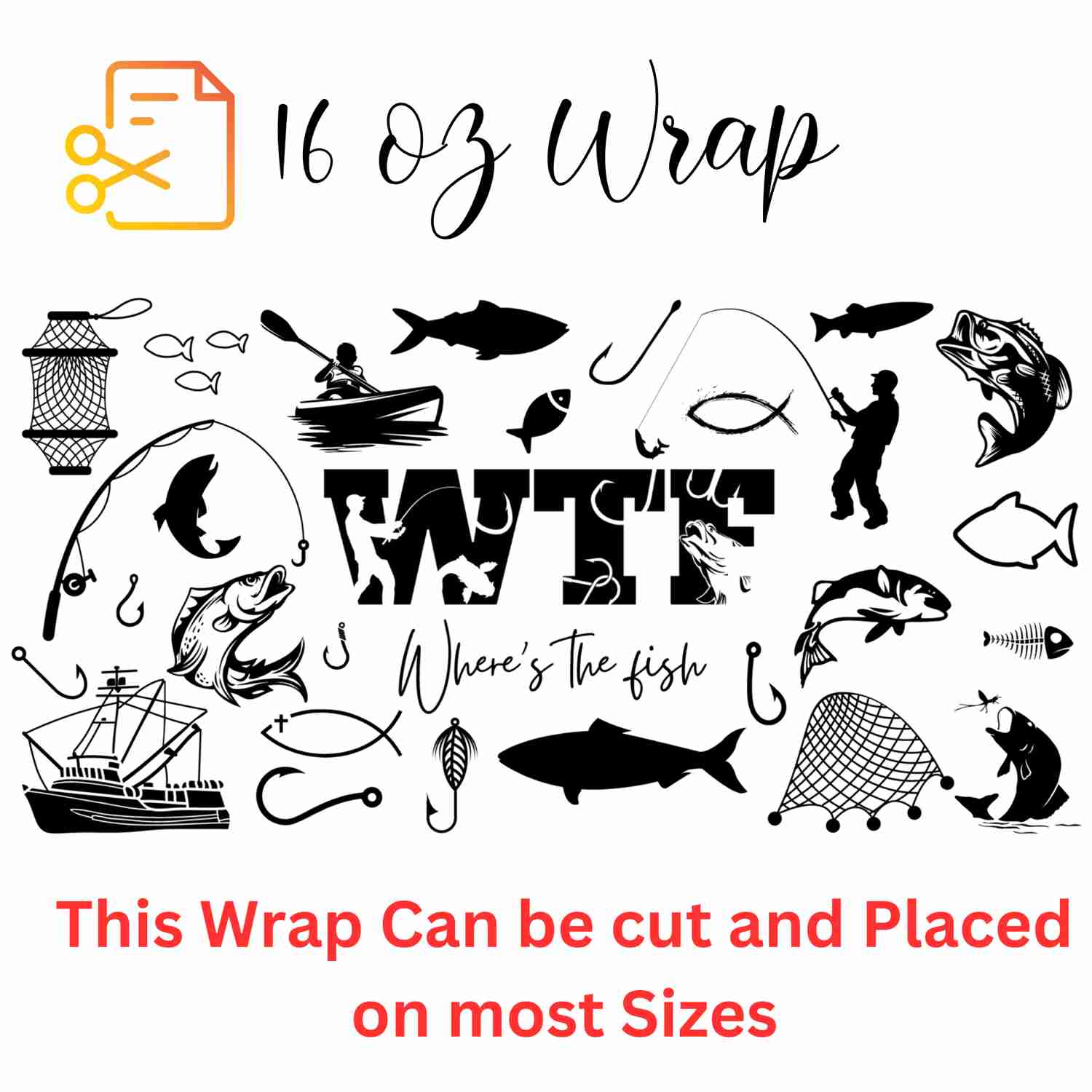 WTF Wheres the Fish UV DTF 16 oz Wrap (Decal Set)
