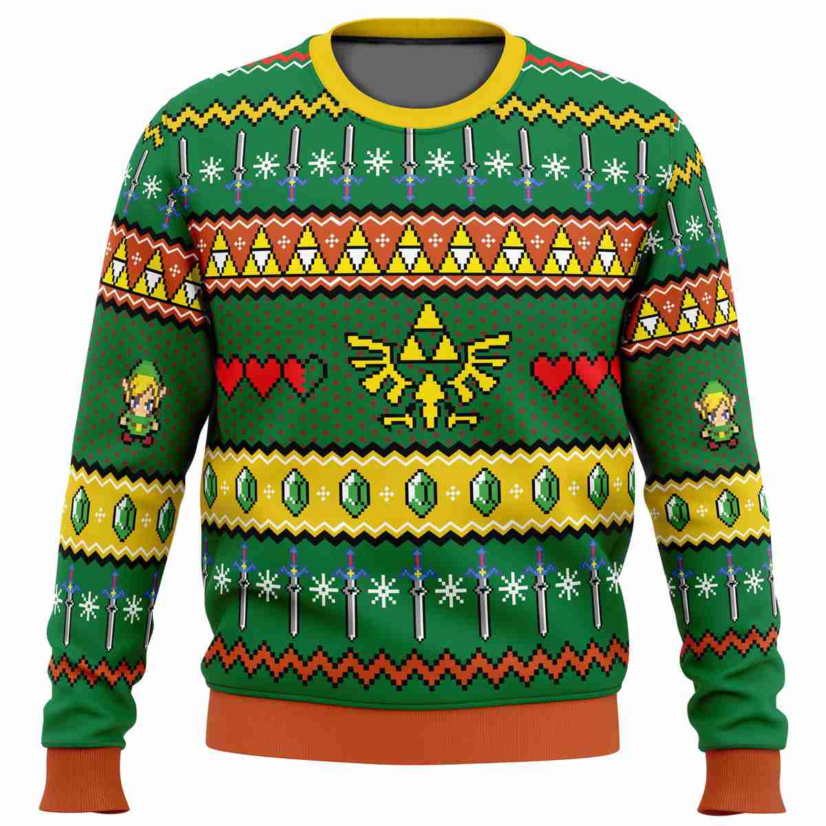 The Legend Of Zelda Sweatshirt - Santa Link Heart Coins Pattern, Black Unisex