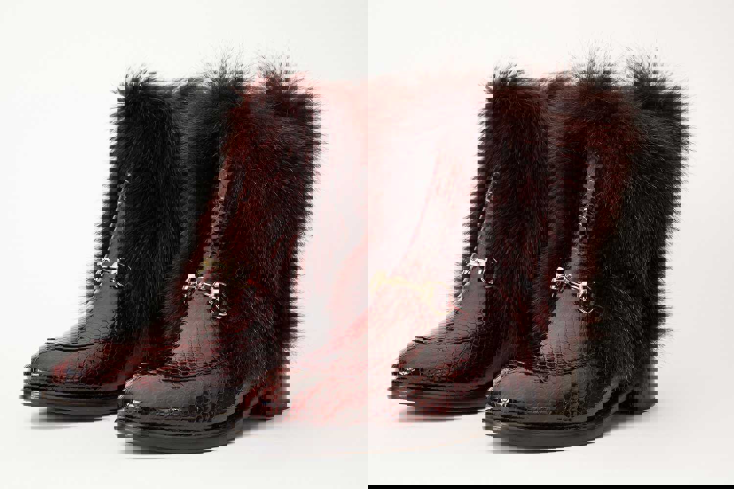 Izmir Burgundy Patent Leather Natural Fur Mid Calf Women Boot