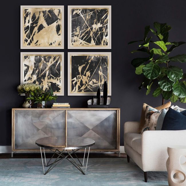 Abstract Gold and Black Wall Art - Modern Canvas Painting for Home Decor