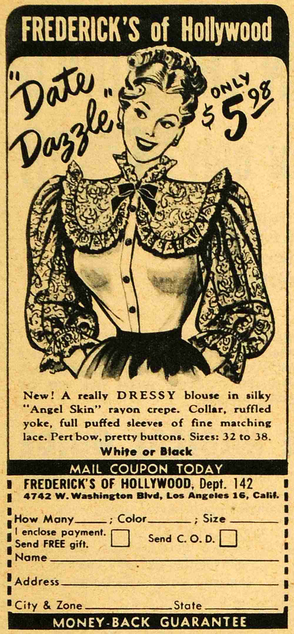 1949 Fredericks Of Hollywood Vintage Women's Fashion Blouse Ad