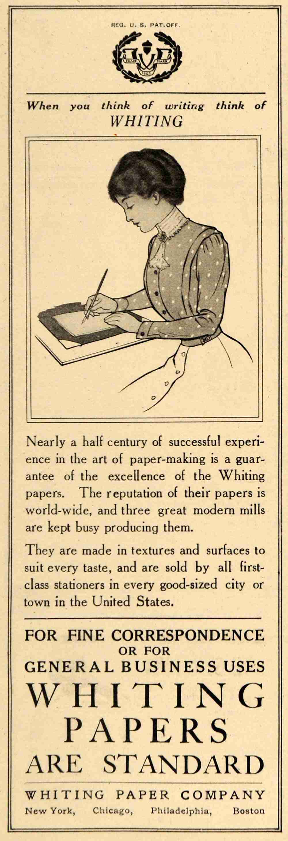 Original 1910 Whiting Papers Business Fashion Dress Clothing Ad - ORIGINAL TIN4