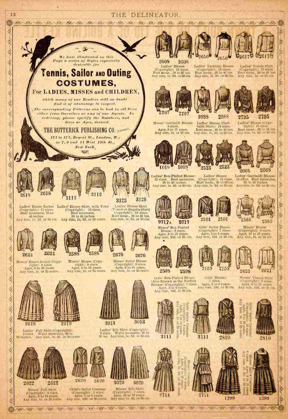 1890 Ad Tennis Sailor Outing Costume for Ladies and Children