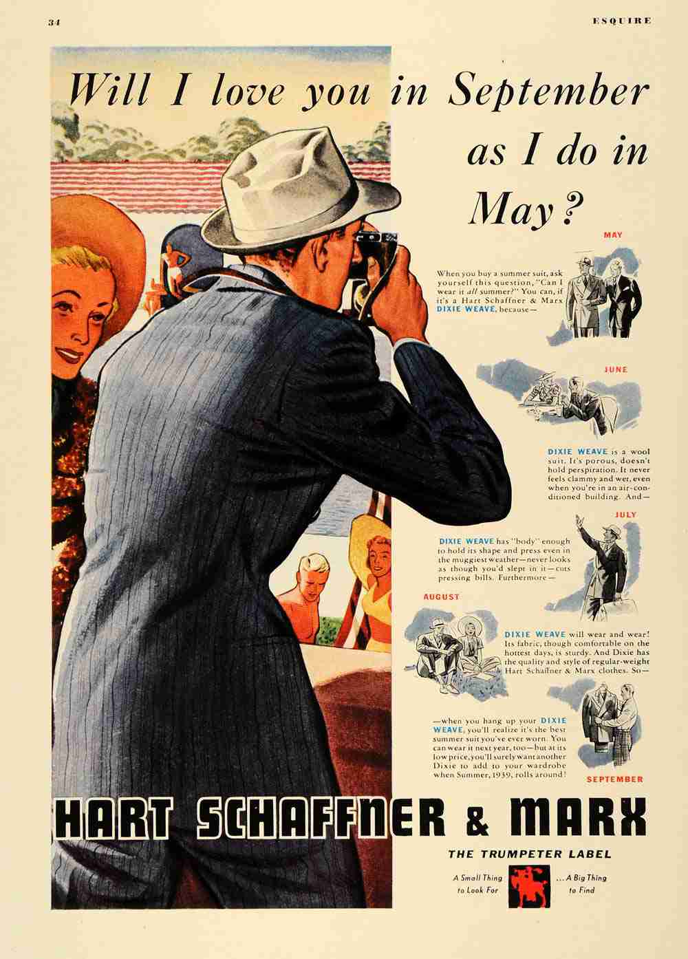 1938 Original Hart Schaffner & Marx Menswear Print Ad - Dixie Weave