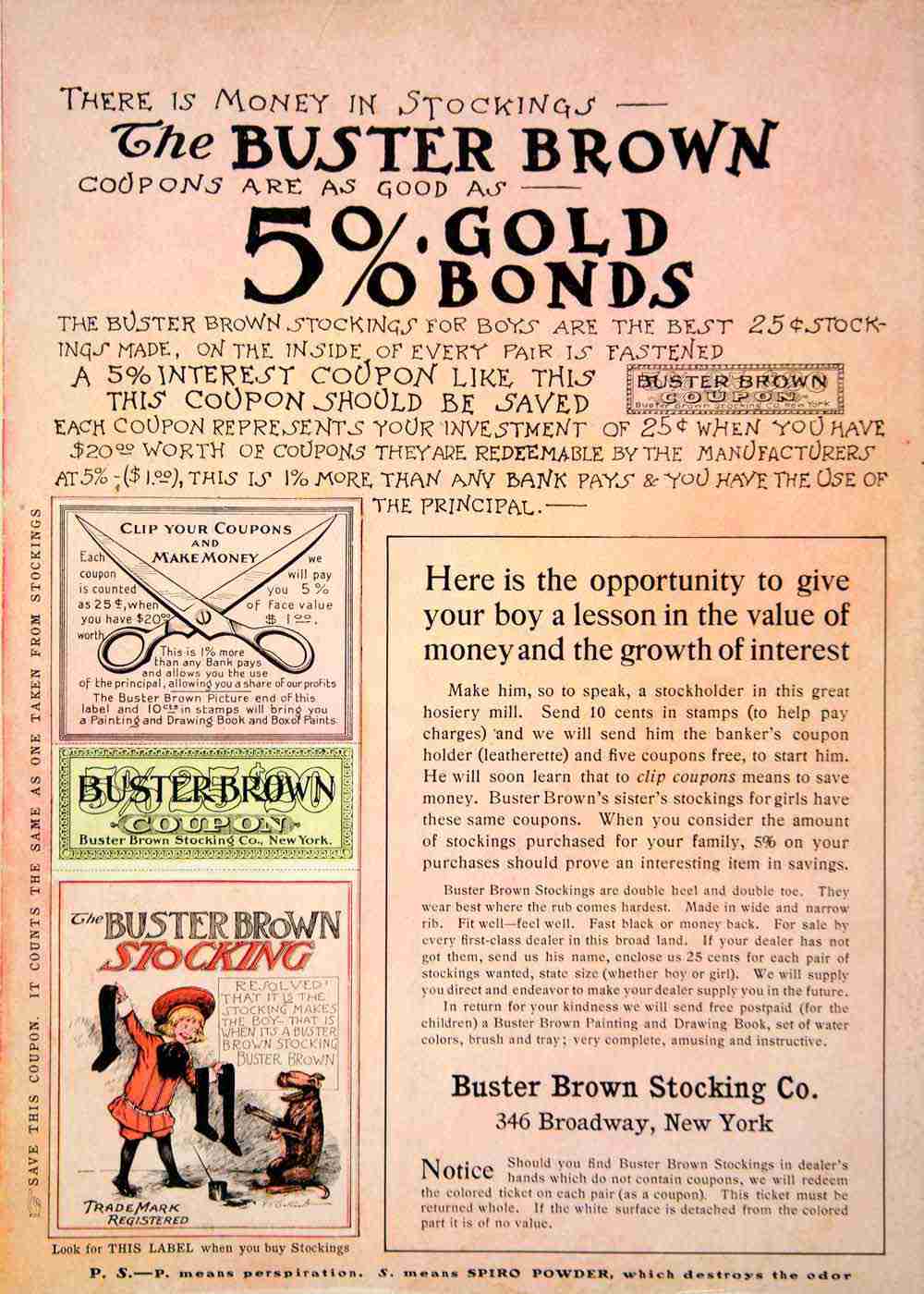 Original 1905 Buster Brown Stocking Ad Print - Vintage Boys Clothing Coupon