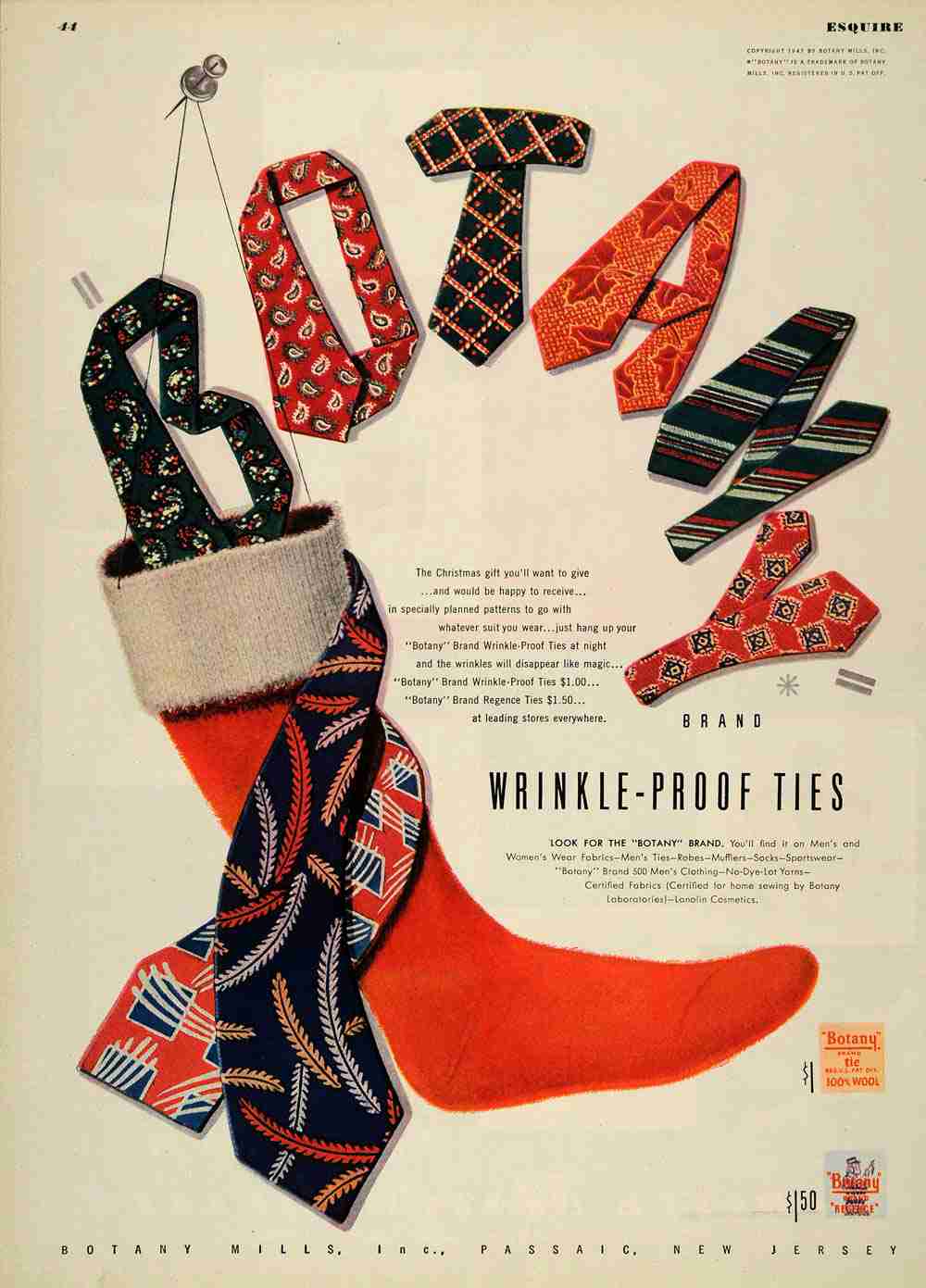 Original 1947 Botany Ties Print Ad from Botany Mills, Passaic, New Jersey