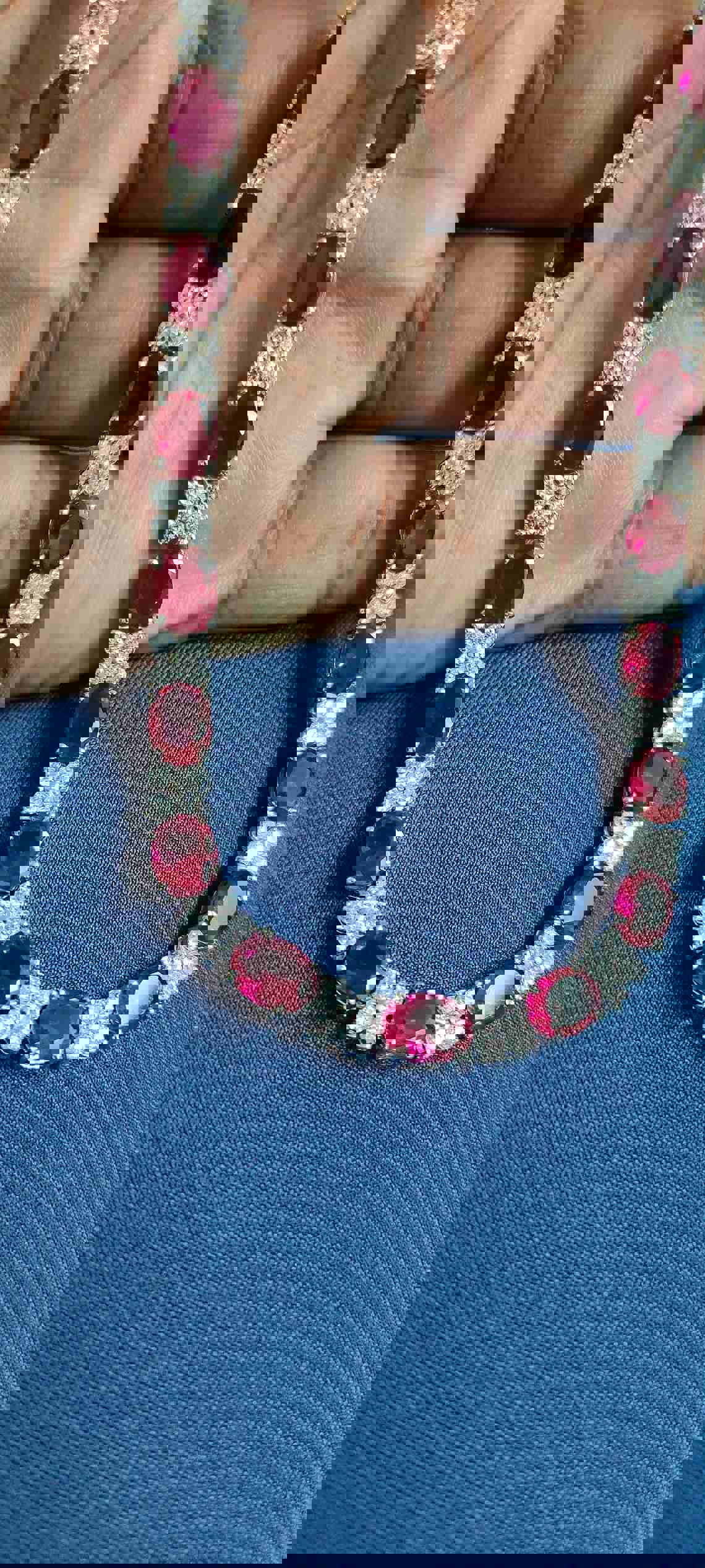 Oval & Round Cut Ruby and VVS Diamond Tennis Necklace 14K Yellow Gold Over