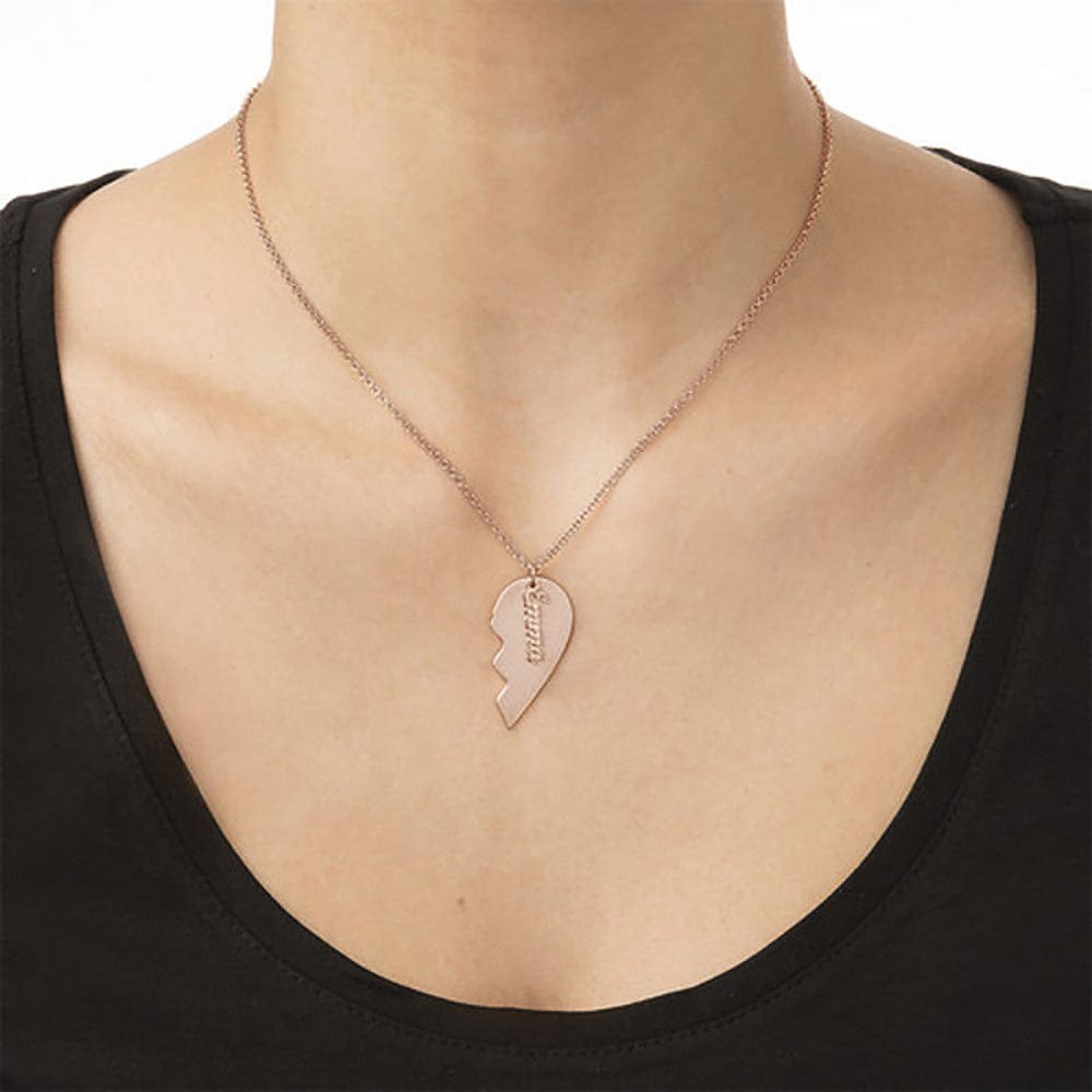 Custom Text Heart Matching Necklace Personalized Silver Name Necklace Jewelry Design for Mother's Day Gift