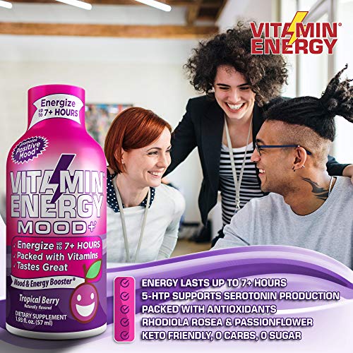 (48 Pack) VitaminEnergy™ Mood+ Keto Energy Shots, Grape Flavor, 7+ Hours Lasting Energy with Anxiety Relief & Mood Boost
