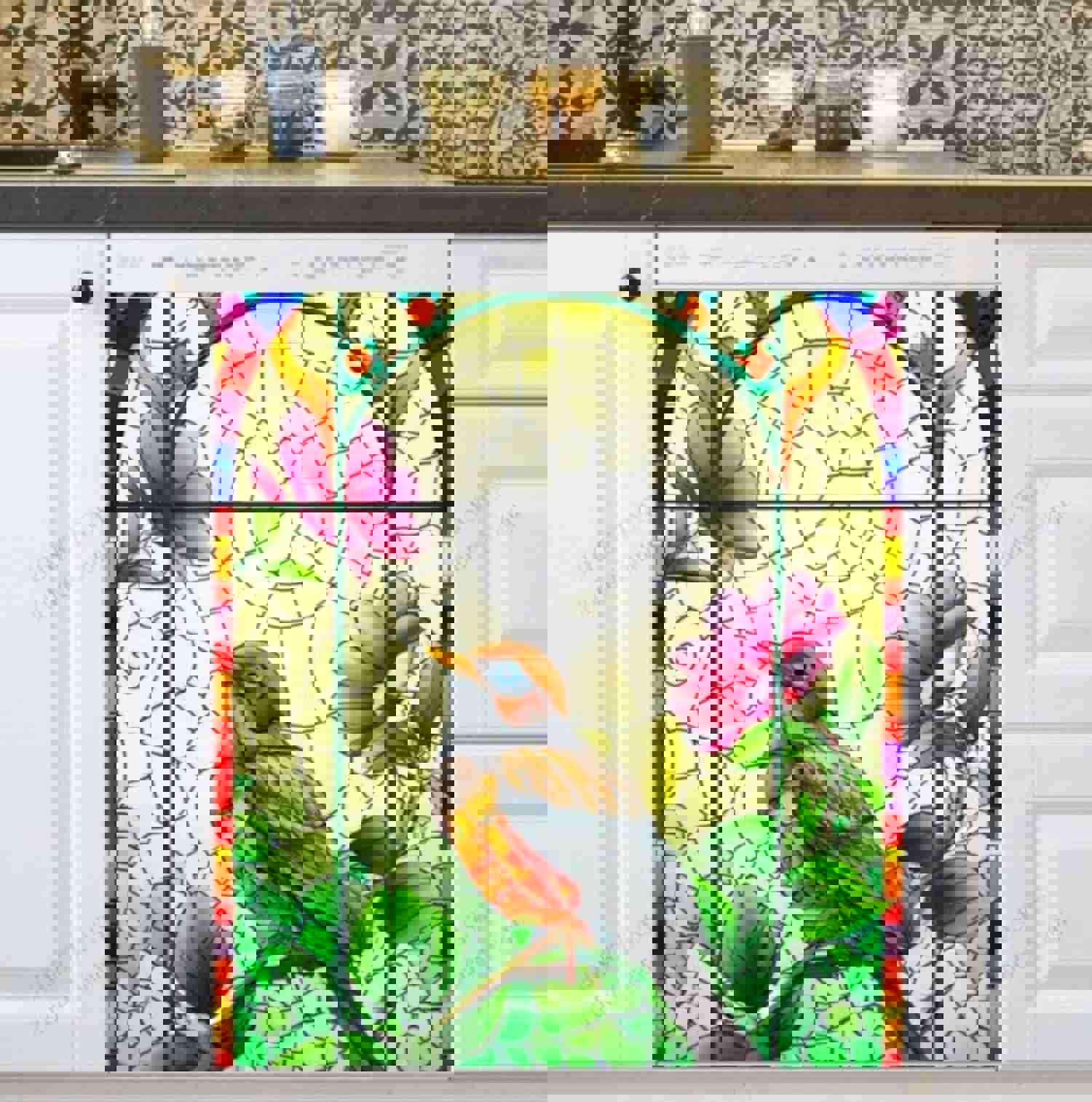Colorful Stained Glass Bird Dishwasher Magnet Cover - Decorative Kitchen Sticker