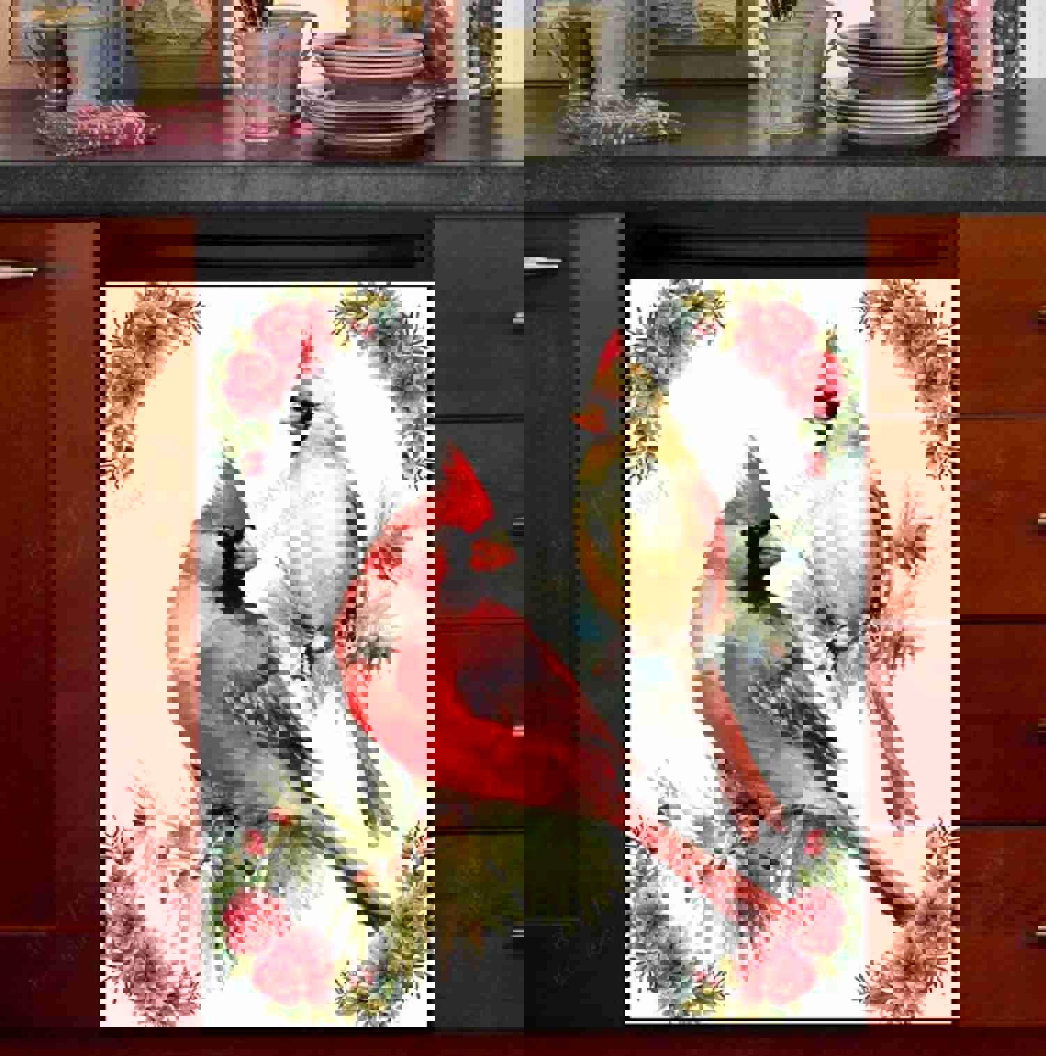 Beautiful Cardinal Couple Dishwasher Magnet Cover - Kitchen Decoration Decals
