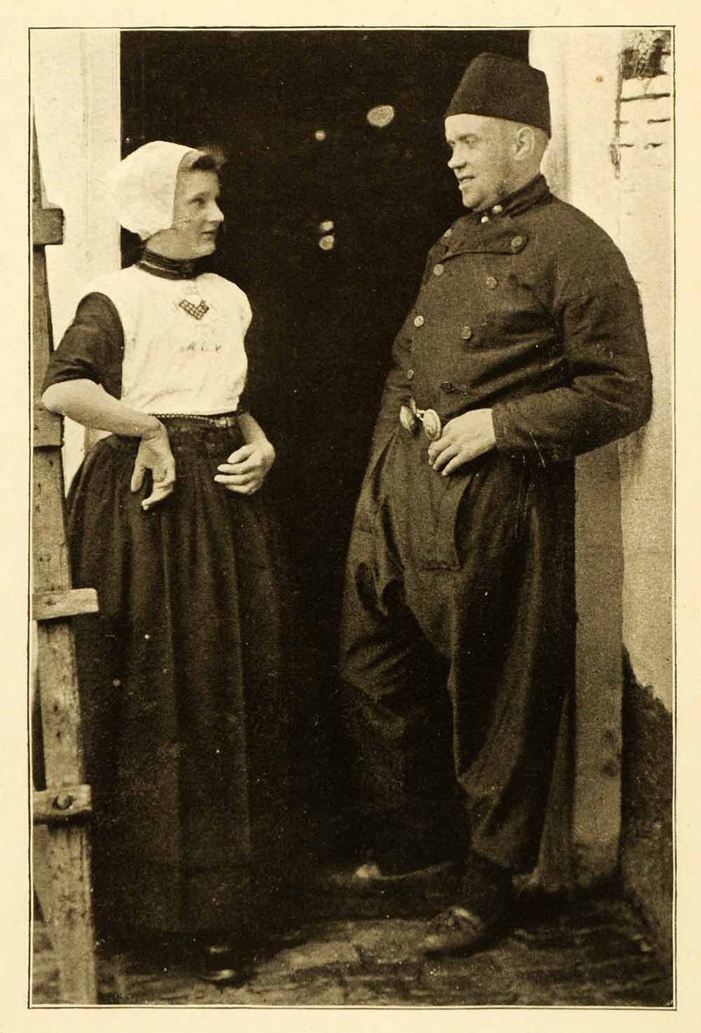 1911 Original Sepia Halftone Print of Urk, Holland Traditional Attire