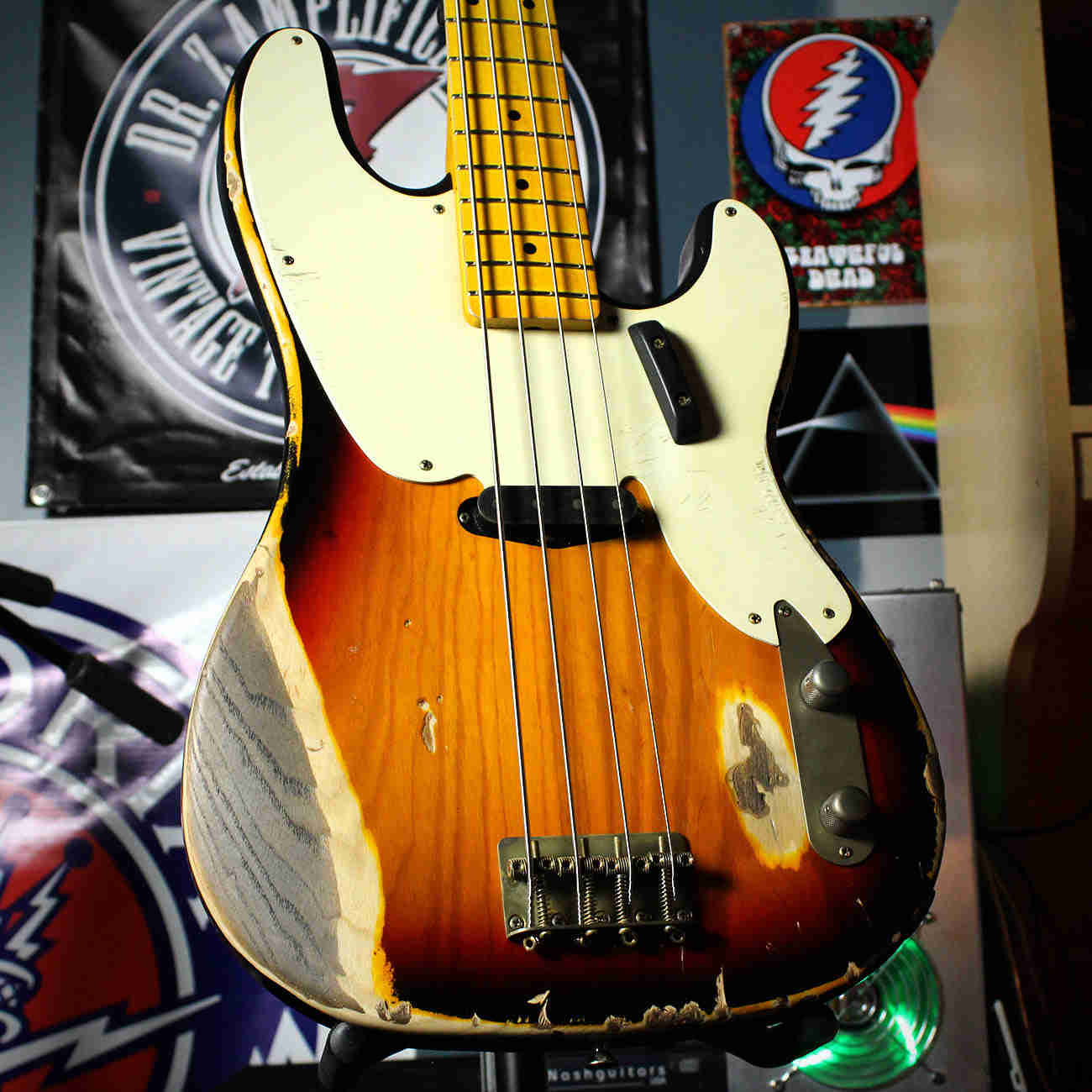 Nash PB-55 Bass Guitar, 3-Tone Burst, Heavy Aging