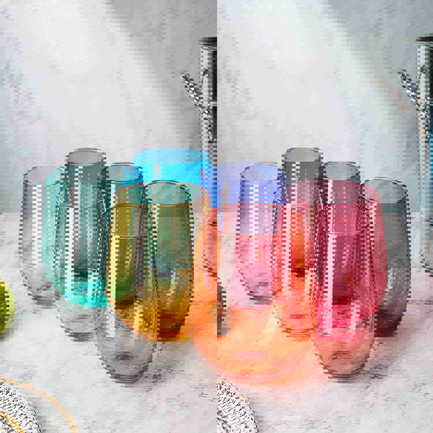 6 Unbreakable Colored Stemless Wine Glasses Acrylic Italian