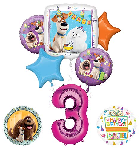 Mayflower Products Secret Life of Pets Party Supplies 3rd Birthday Balloon Bouquet Decorations - Pink Number 3