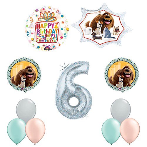Mayflower Products Secret Life of Pets Party Supplies 6th Birthday Balloon Bouquet Decorations - Blue Number 6