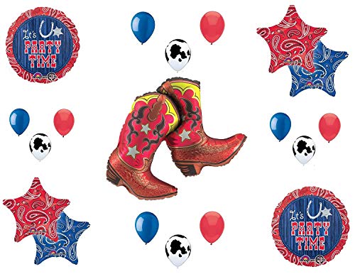Western Theme Birthday Party Balloon Bouquet with Yeehaw Boots Decorations