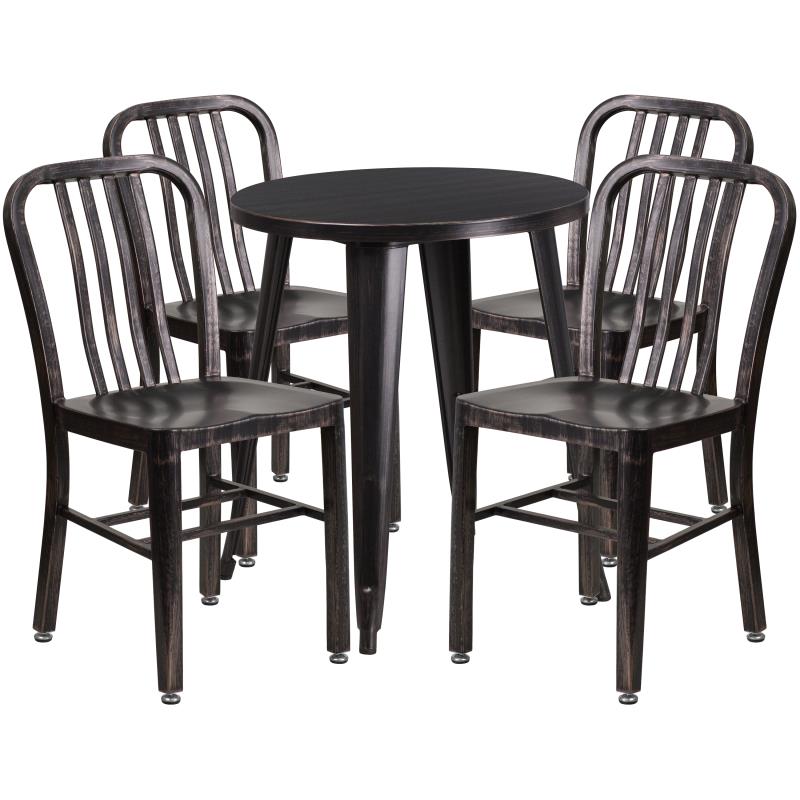 CH-51080TH-4-18VRT Flash Furniture Thomas Commercial Grade 24 Round Black-Antique Gold Metal Indoor-Outdoor Table Set with 4 Chairs