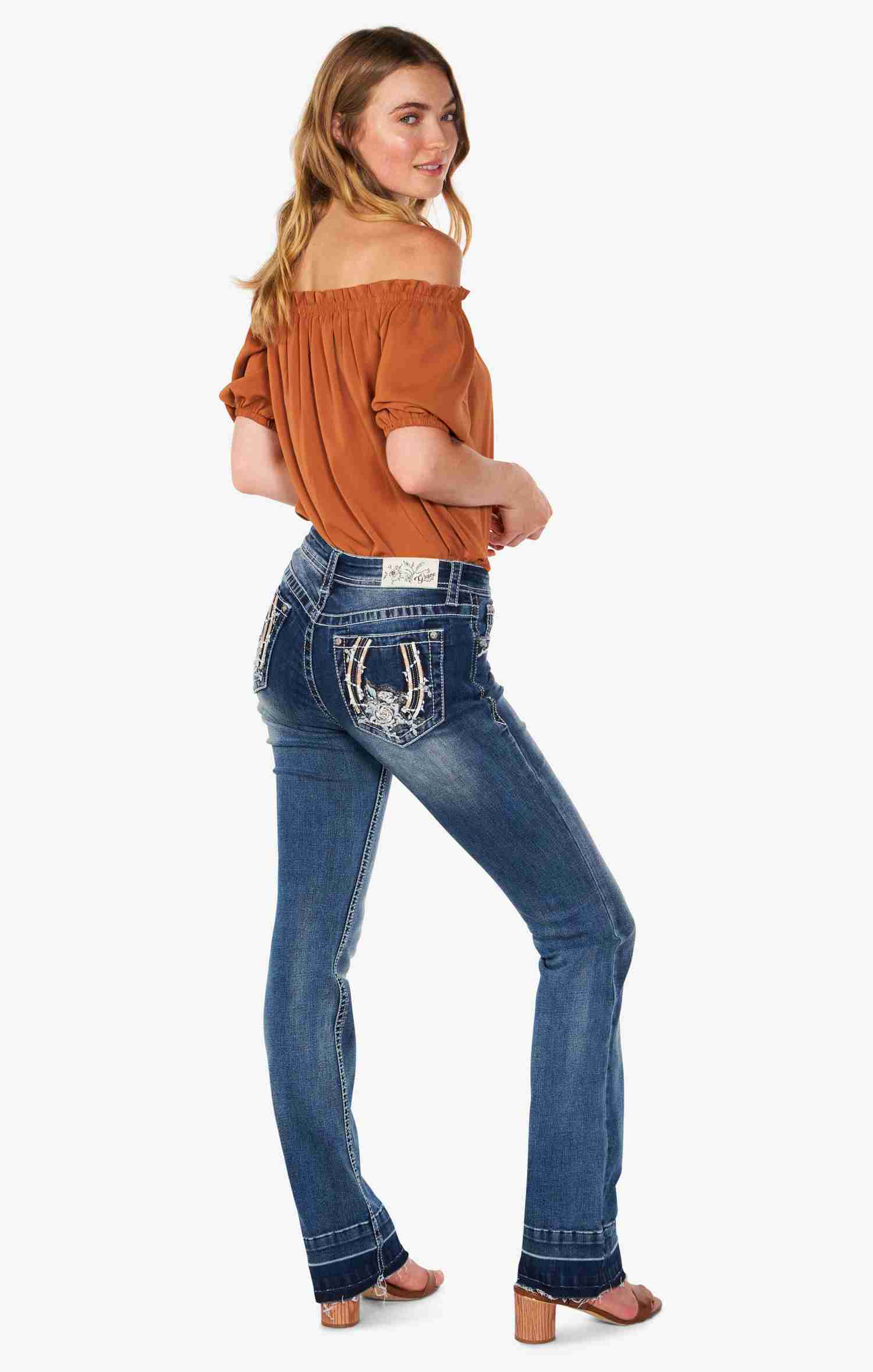 34/34 Horse Shoe Embellishment Mid Rise Boot Cut Jeans for Women | EBS499