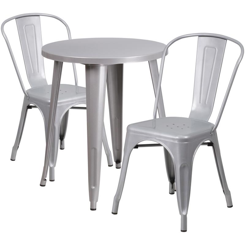 Flash Furniture Napoleon Commercial Grade 24 Round Silver Metal Indoor-Outdoor Table Set with 2 Cafe Chairs