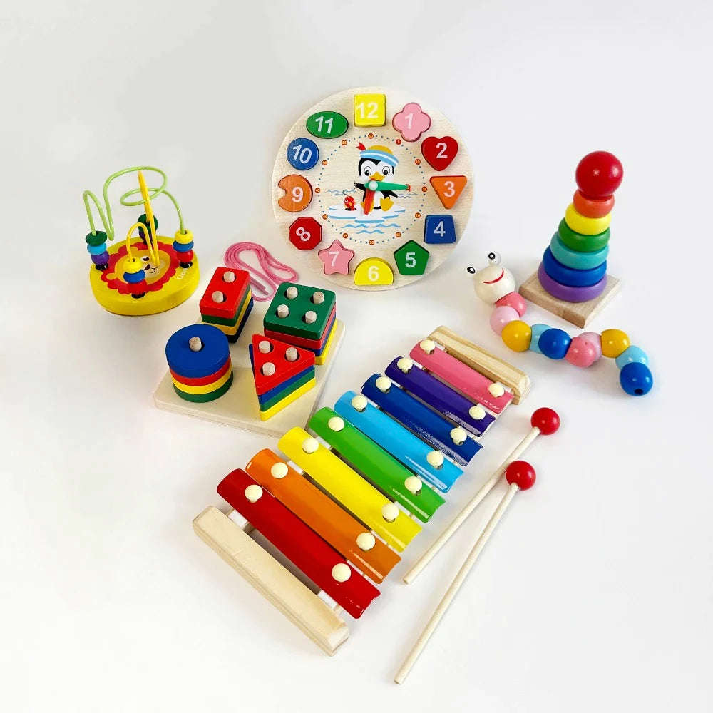 Montessori Wooden Baby Educational Toy - Colorful Wooden Blocks for Early Childhood Learning