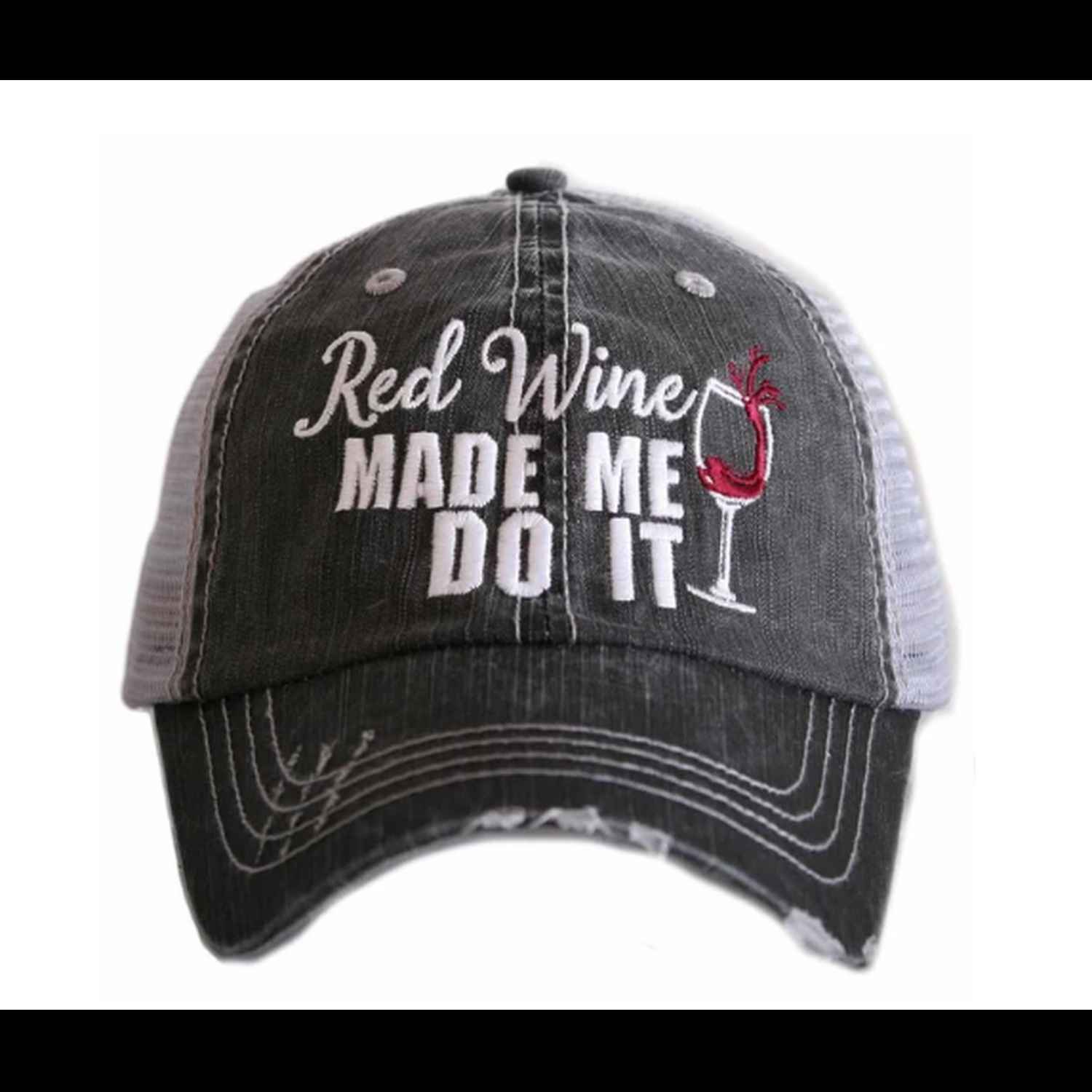 Red Wine Trucker Hat - Distressed Embroidered Cap