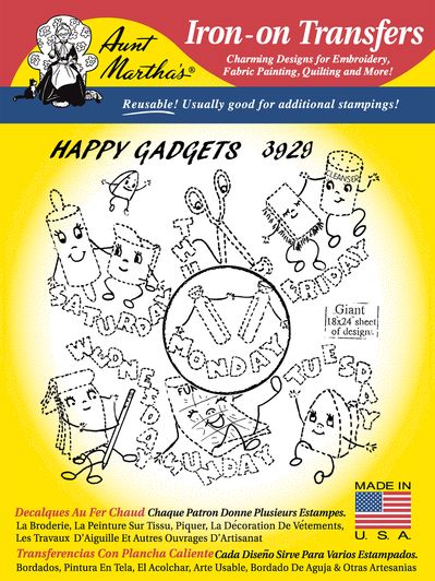 Happy Gadgets Vintage Iron-on Embroidery Pattern Aunt Marthas® #3929