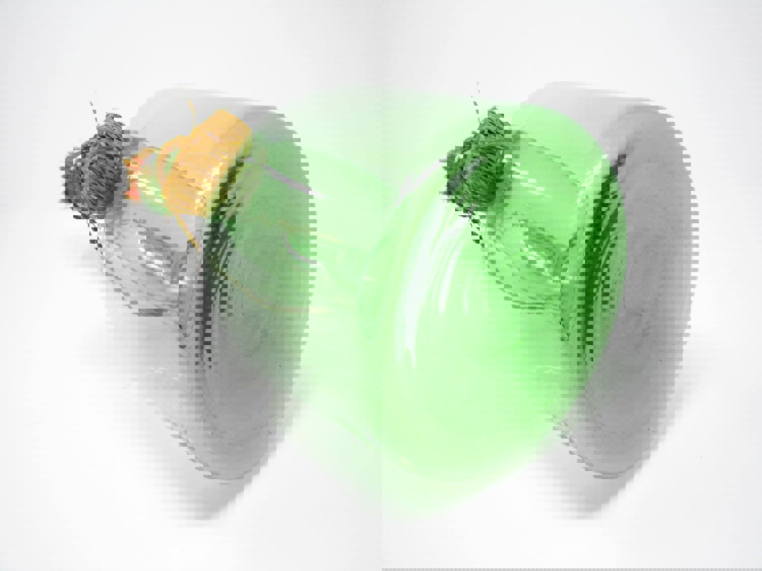 Vintage Italian Green Blown Glass Wine Decanter with Straw Stoppers