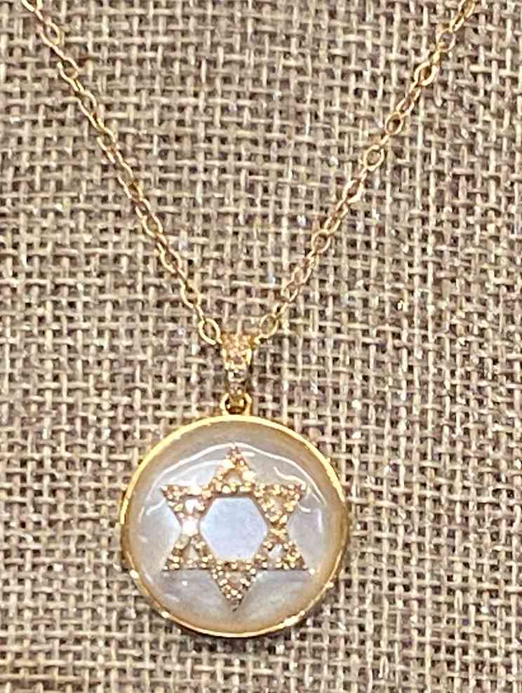 14K Yellow Gold and Diamond Moonstone Star of David Pendant