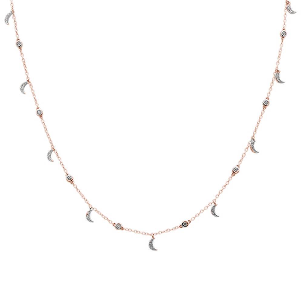 SPECIAL! 23ct 14k Rose Gold Crescent Moon Diamond Pendant Necklace 18"