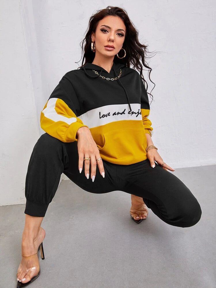 Letter Graphic Drawstring Hoodie Sweatpants